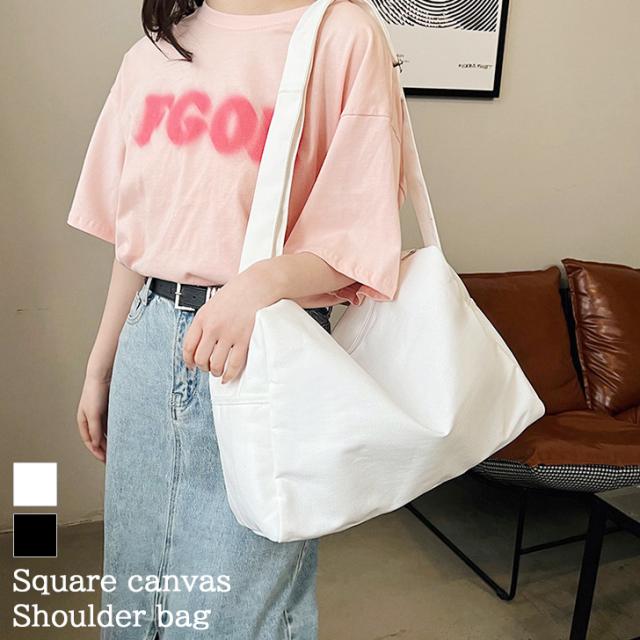 新作 シンプルスクエアキャンバスファスナーショルダーバッグ レディース メンズ ショルダーバッグ トートバッグ ショルダートート 斜めがけ 肩掛け ファスナー a4 大容量 軽量 おしゃれ カジュアル 通勤 通学