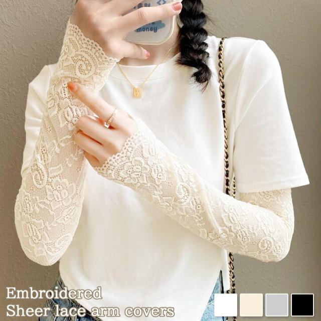新作 シアーレースボタニカル刺繍アームカバー レディース アームカバー 腕カバー 付け袖 つけ袖 ロング 薄手 夏 レース シアー シースルー 透け感 UVケア 紫外線対策 日焼け防止 日よけ おしゃれ かわいい