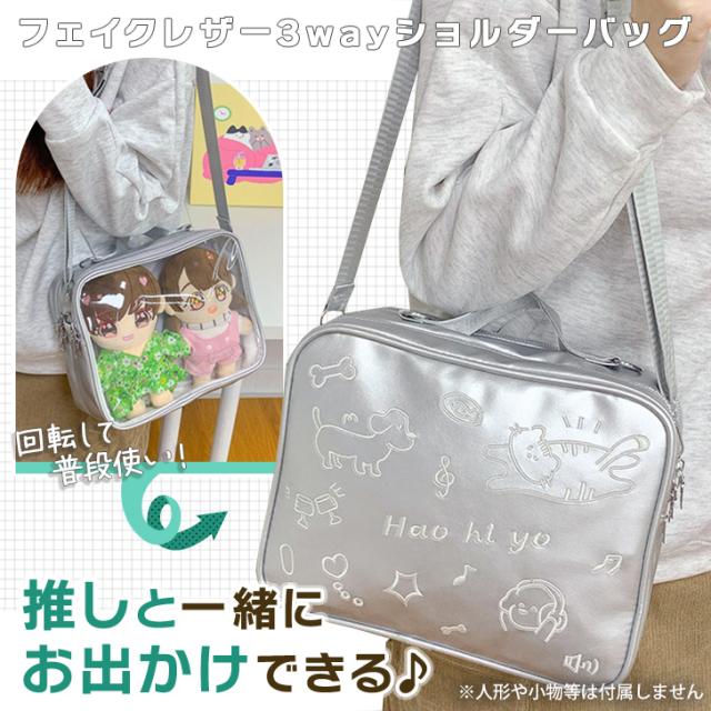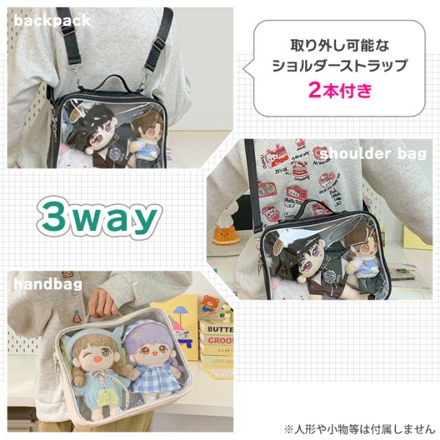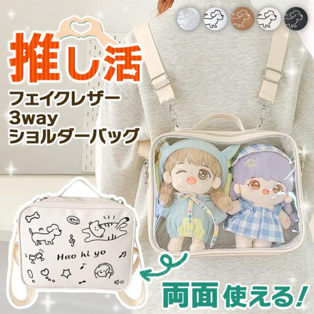 新作 2層式クリアポケット刺繍フェイクレザー3wayショルダーバッグ レディース ショルダーバッグ リュック ハンドバッグ 痛バッグ クリアバッグ 推し活 ぬい 缶バッジ 斜めがけ 肩掛け 軽量 メッシュ おしゃれ