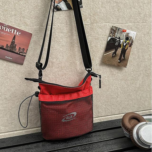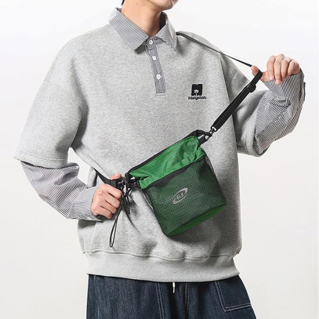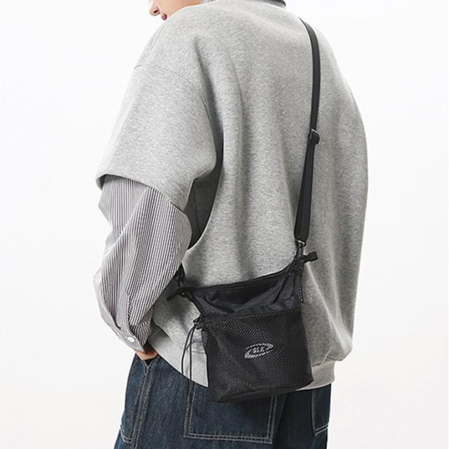 ユニセックスに使えるメッシュポケットショルダーバッグ