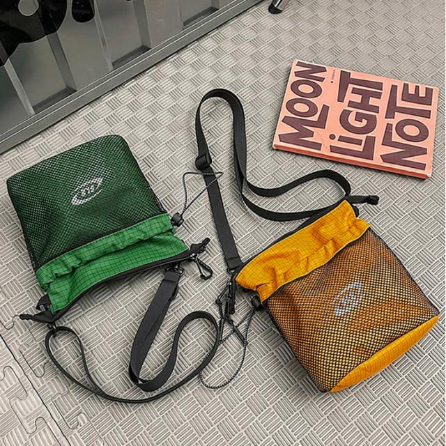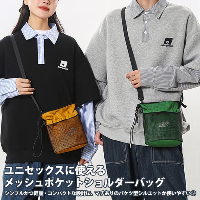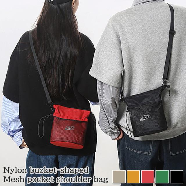 新作 ナイロンバケツ型ドローコードメッシュポケットショルダーバッグ レディース メンズ バッグ ショルダーポーチ ポーチ 小物入れ 斜めがけ 肩掛け 小さめ 小さい 軽量 カジュアル おしゃれ アウトドア デイリー
