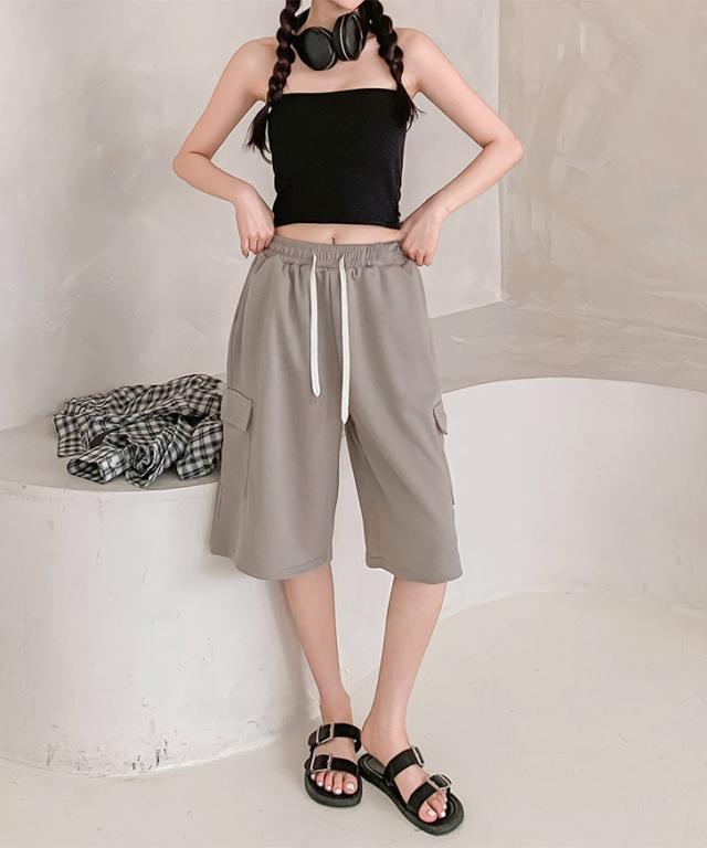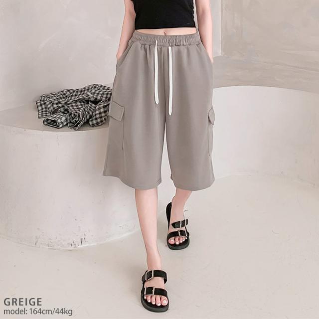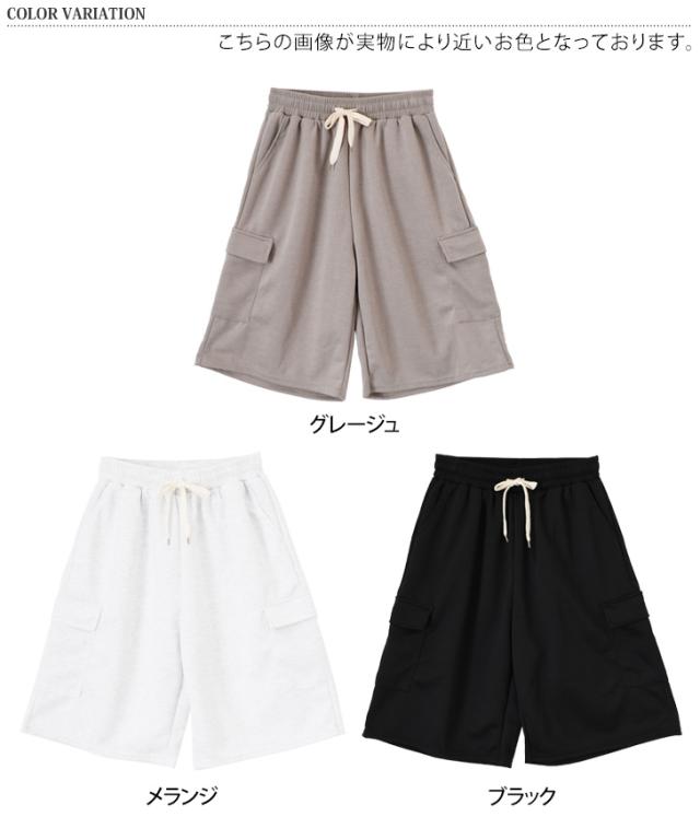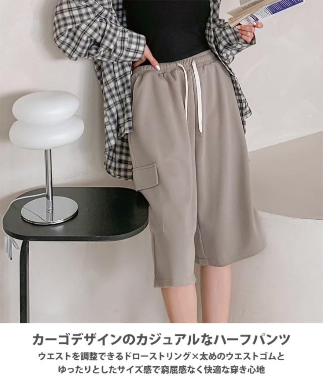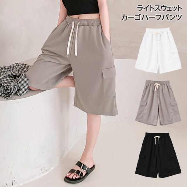 新作 サイドポケットライトスウェットドローストリングカーゴハーフパンツ レディース ボトムス 春 夏 膝丈 膝上 カーゴパンツ 半ズボン ライトスエット 涼しい ゆったり ウエストゴム 短パン カジュアル おしゃれ