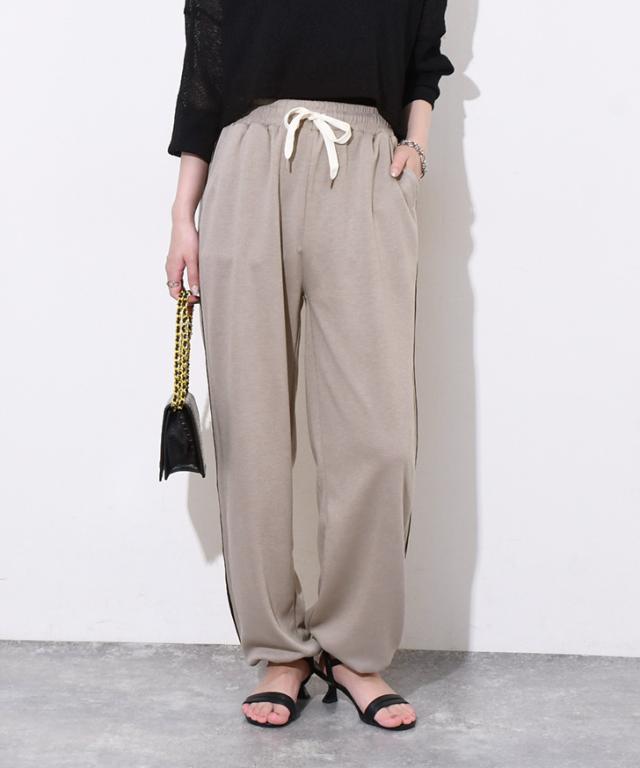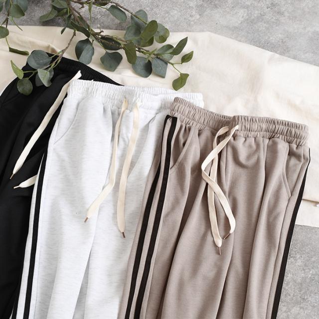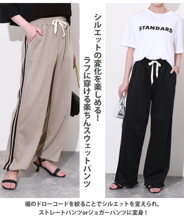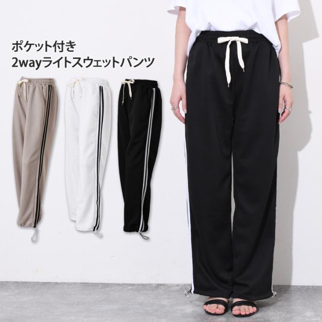 新作 ポケット付きサイドラインドロストヘム2wayライトスウェットパンツ レディース ジョガーパンツ ワイドパンツ ボトムス 薄手 夏 ライトスエット 部屋着 スポーツ 運動 ゆったり ウエストゴム ハイウエスト