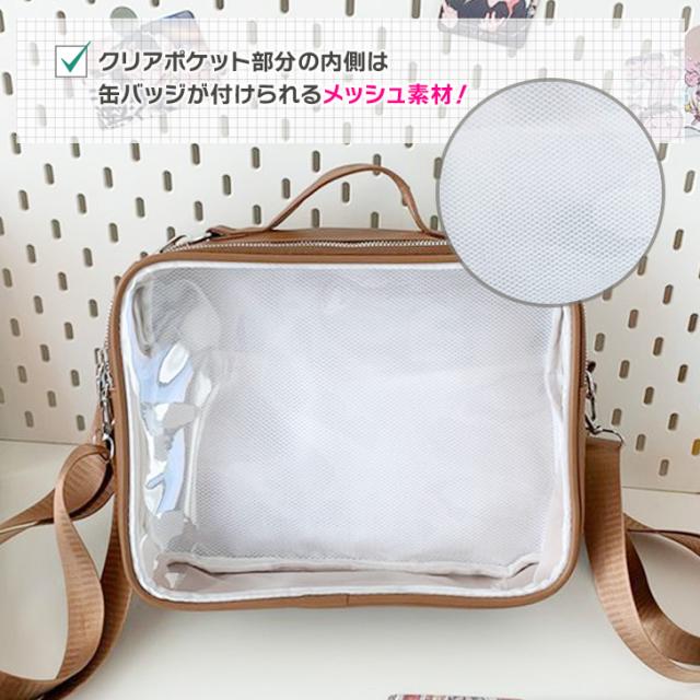 新作 2層式クリアポケット刺繍フェイクレザー3wayショルダーバッグ レディース ショルダーバッグ リュック ハンドバッグ 痛バッグ クリアバッグ 推し活 ぬい 缶バッジ 斜めがけ 肩掛け 軽量 メッシュ おしゃれ