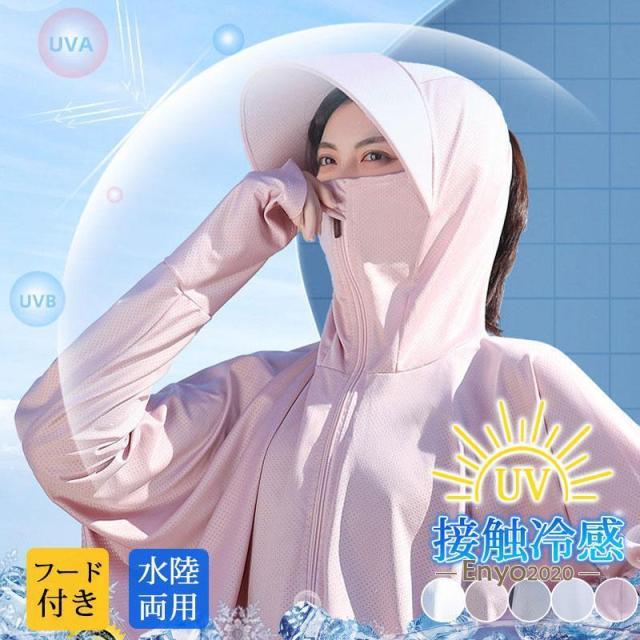 ラッシュガード パーカー レディース UVカット 長袖 水着 フード付き 紫外線対策 水陸両用 薄手 通気性 ひんやり 冷たい 熱中症対策