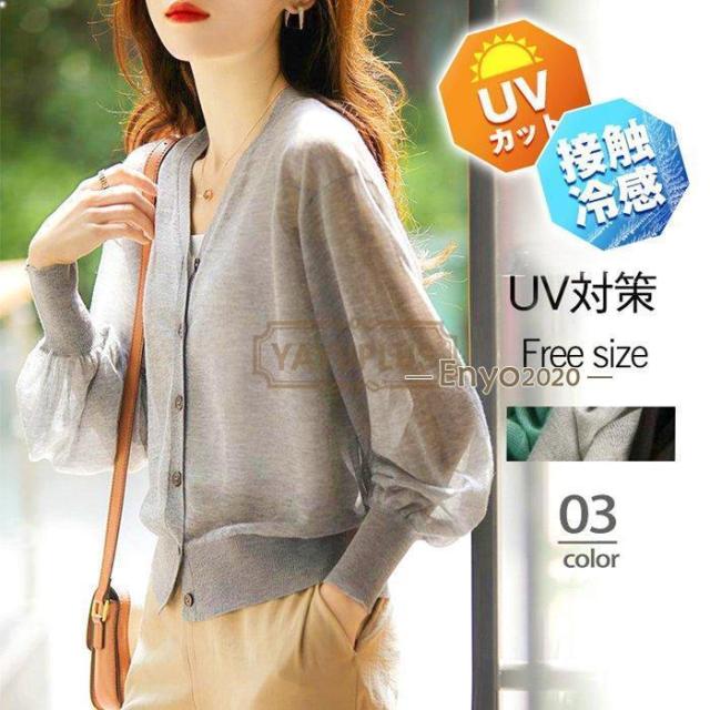 カーディガン Vネックカーディガン 透け感 Vネック 長袖 UVカット 冷房対策 長袖 無地 シースルー 薄手 羽織り きれいめ 春 夏 レディース