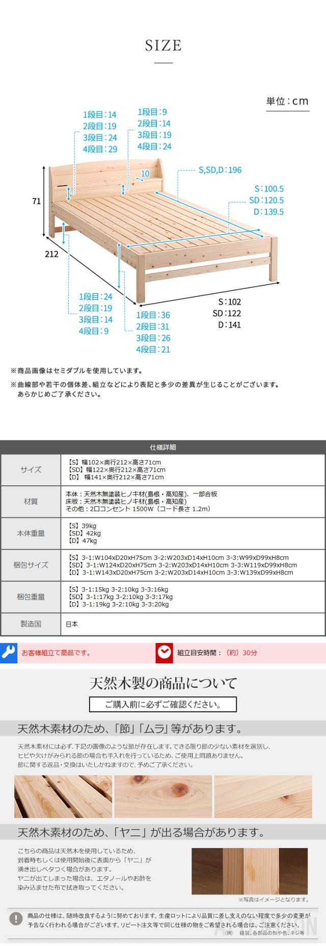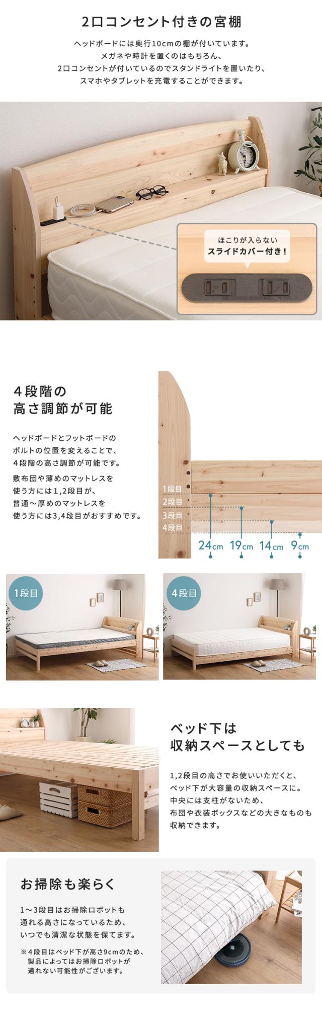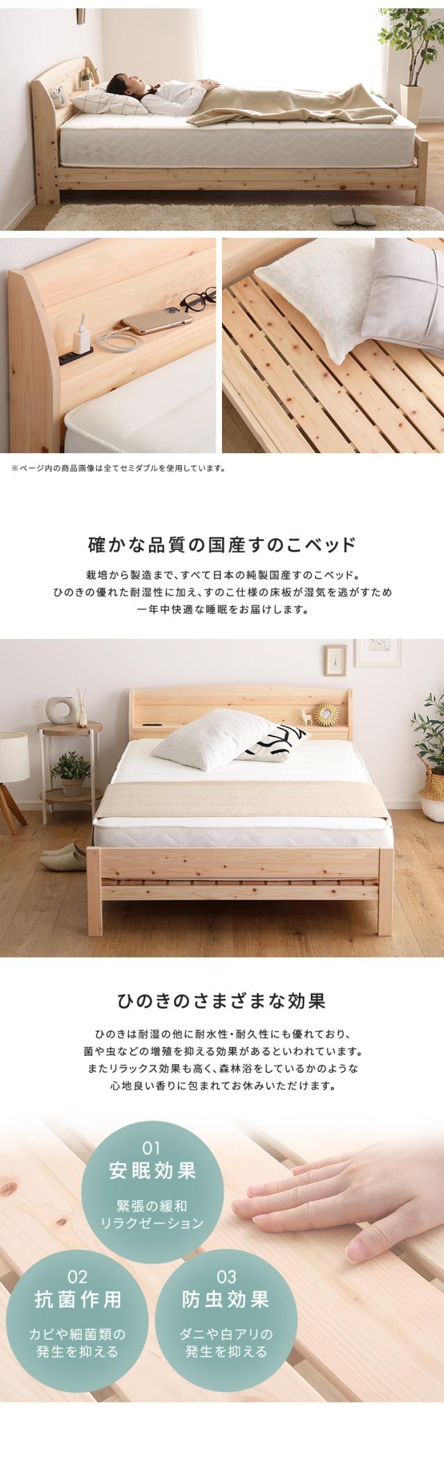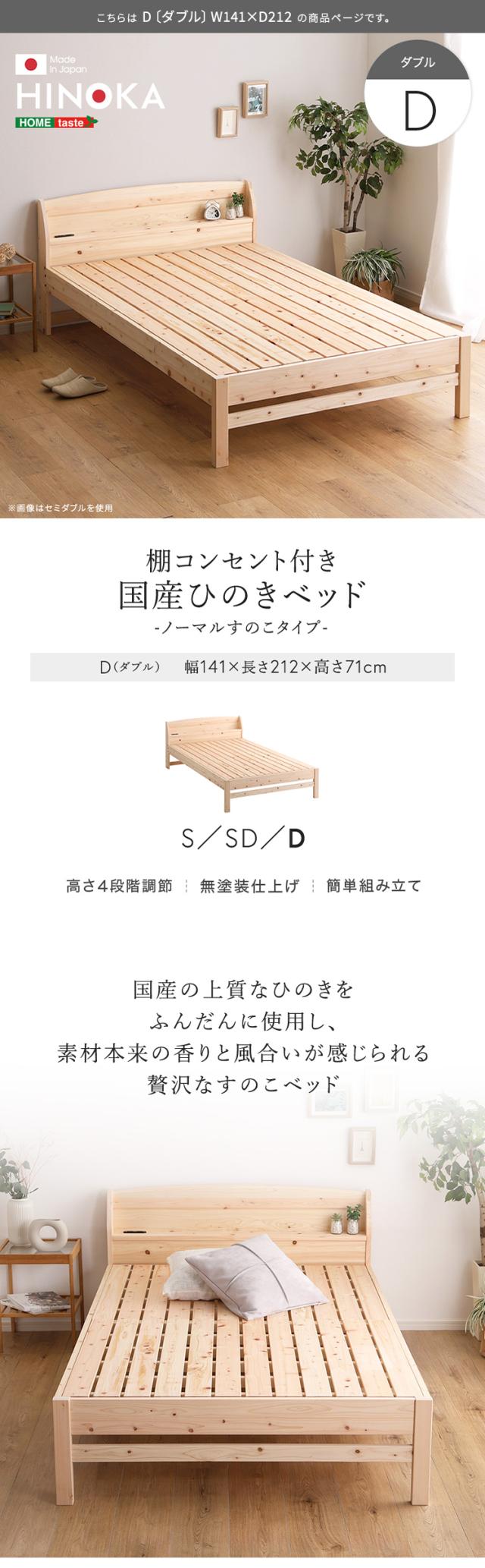 棚 コンセント付き 国産 ひのき ベッド ノーマルすのこタイプ HINOKA ヒノカ ダブル 抗菌 防虫 4段階高さ調節 リラックス効果 JIS試験合格 新生活 引っ越し 家具 インテリア 模様替え SH-30-JPGG-D