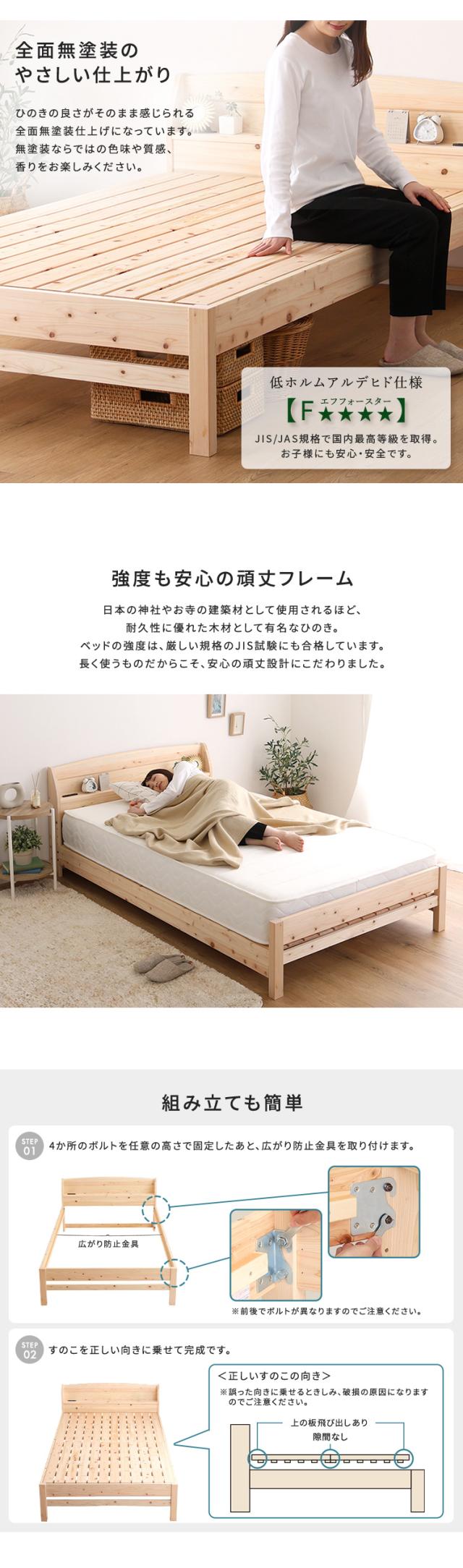 棚コンセント付き国産ひのきベッド ノーマルすのこタイプ ダブルサイズ!