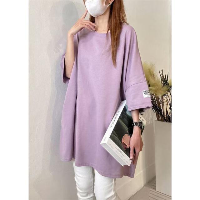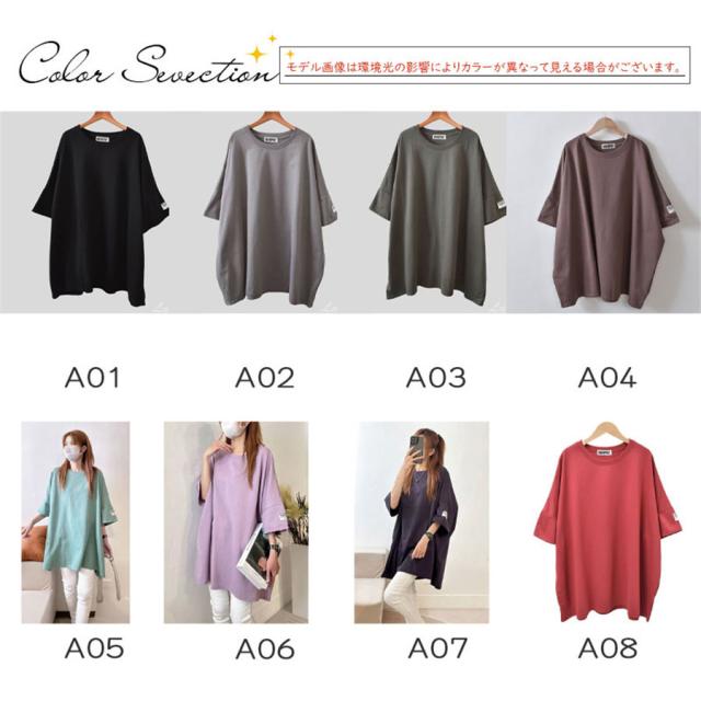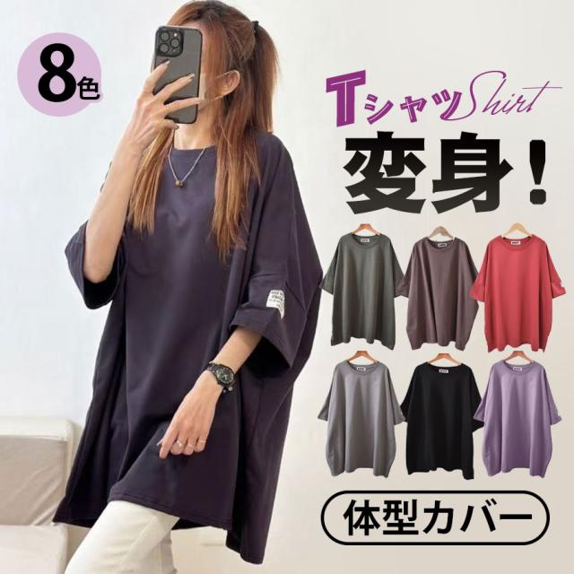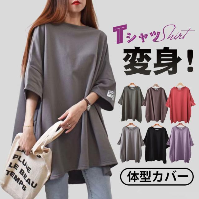 『2点ご購入で200円OFF』Tシャツ 半袖 tシャツ レディース 半袖 夏 大きいサイズ ロング丈 ロングT ゆったり カットソー トップス 体型カバー 夏服
