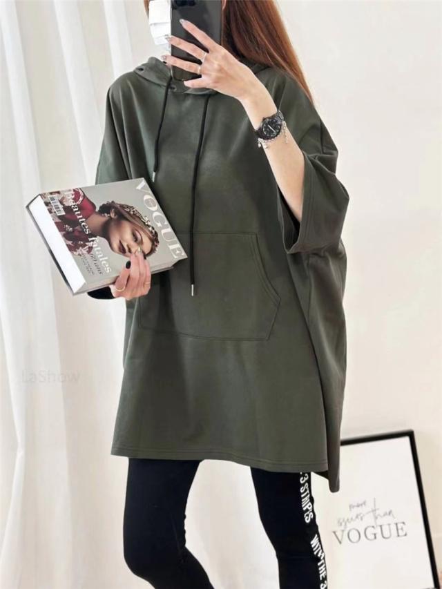 Tシャツ 半袖 tシャツ レディース 半袖 夏 フード付 大きいサイズ ロング丈 ロングT ゆったり カットソー トップス 体型カ
