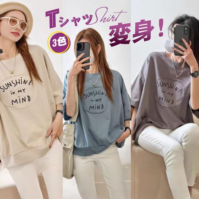 Tシャツ 半袖 tシャツ レディース 半袖 夏 大きいサイズ ゆったり カットソー トップス 体型カバー 夏服 着痩せ 快適 シン
