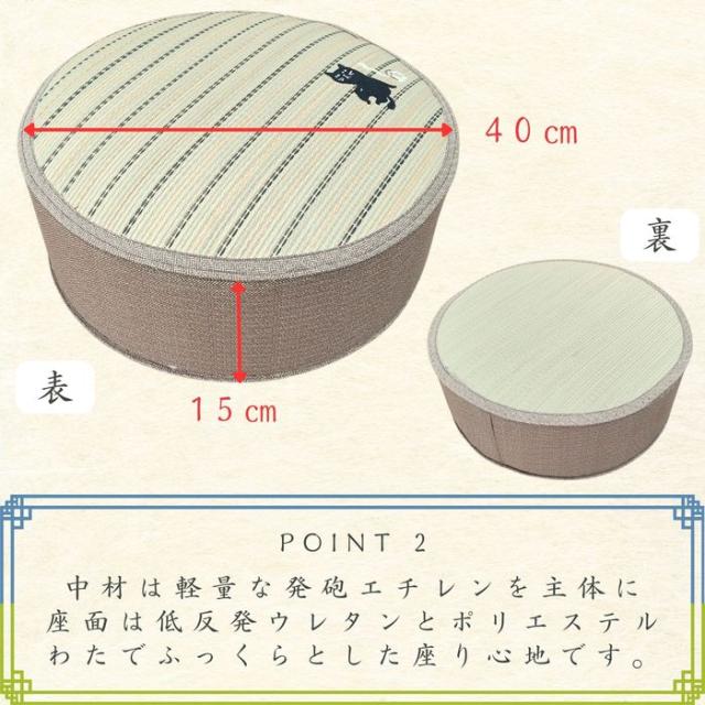 い草スツールクッション おやじネコ 40Rx15cm さらさら肌触り 軽量発泡エチレン シリーズ商品