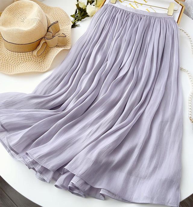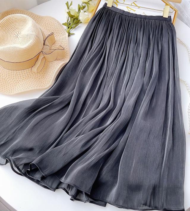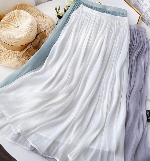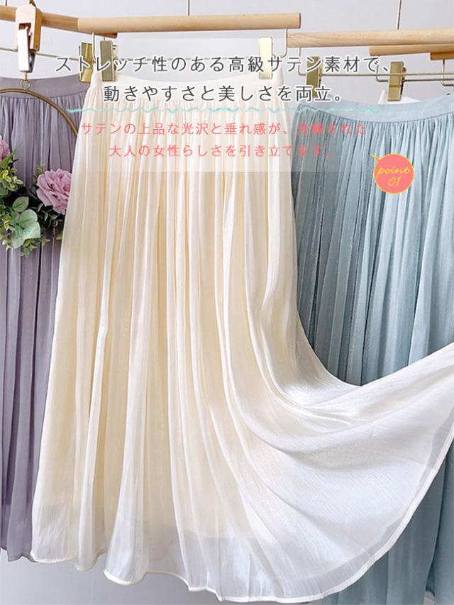 シルキー光沢 気Aラインスカート 女性用 スリム 流れるような軽やかさ 夏 ロングスカート 着回し 高腰