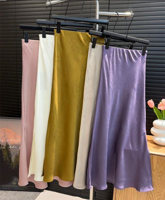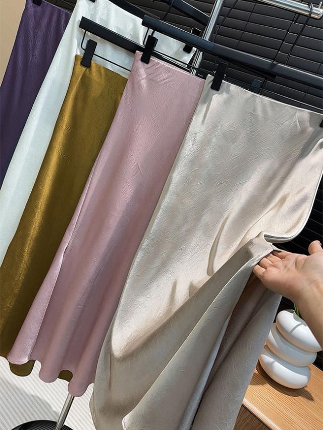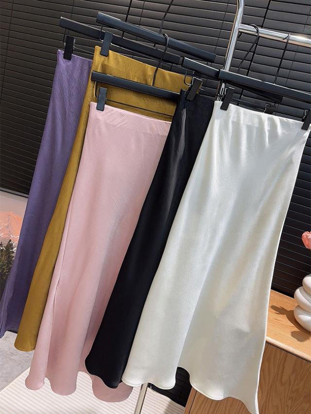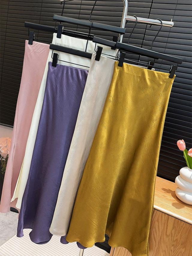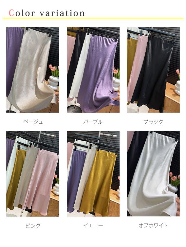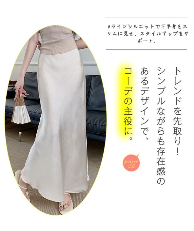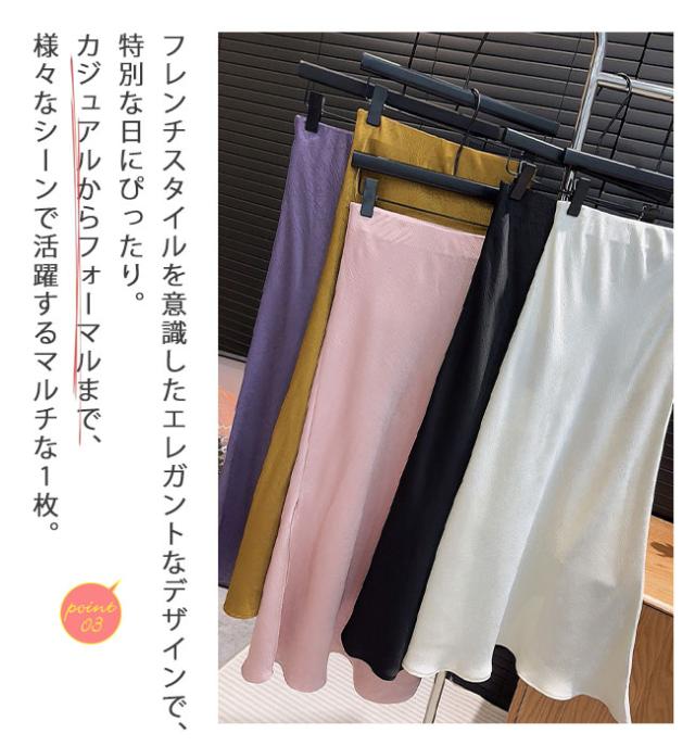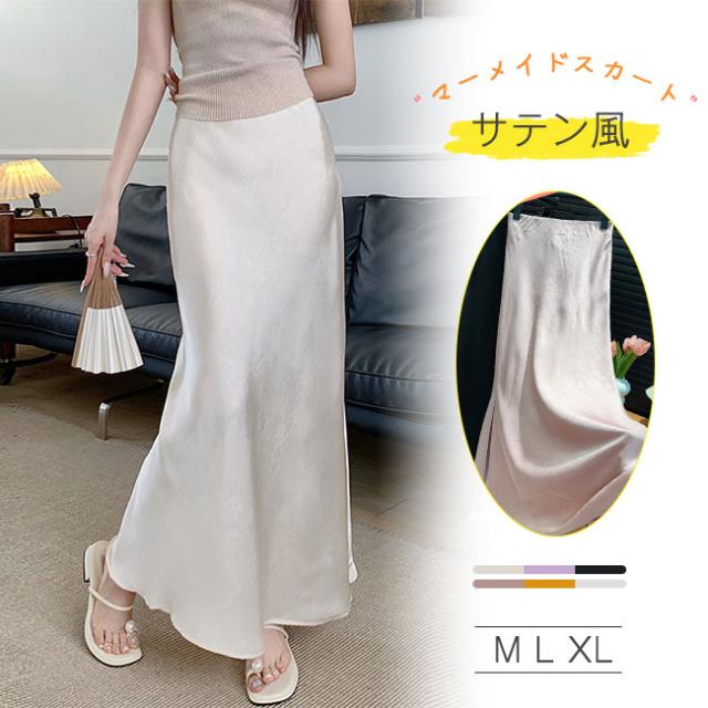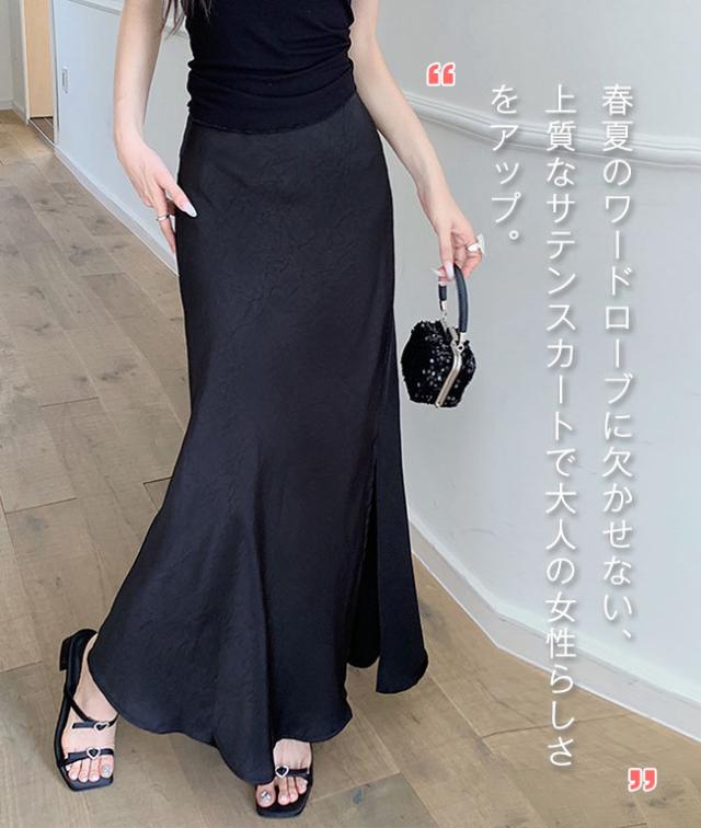 スリットサテンスカート 春夏新作 シルクロングスカートマーメイドスカート サテン レディース ロング丈 光沢 Aライン