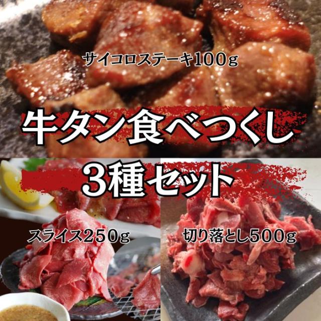 送料無料 牛タン食べつくし 3種セット 約850g サイコロステーキ 牛タン 牛たん やわらか 牛タンスライス 牛タン薄切り 切り落とし ステーキ 焼肉 BBQ