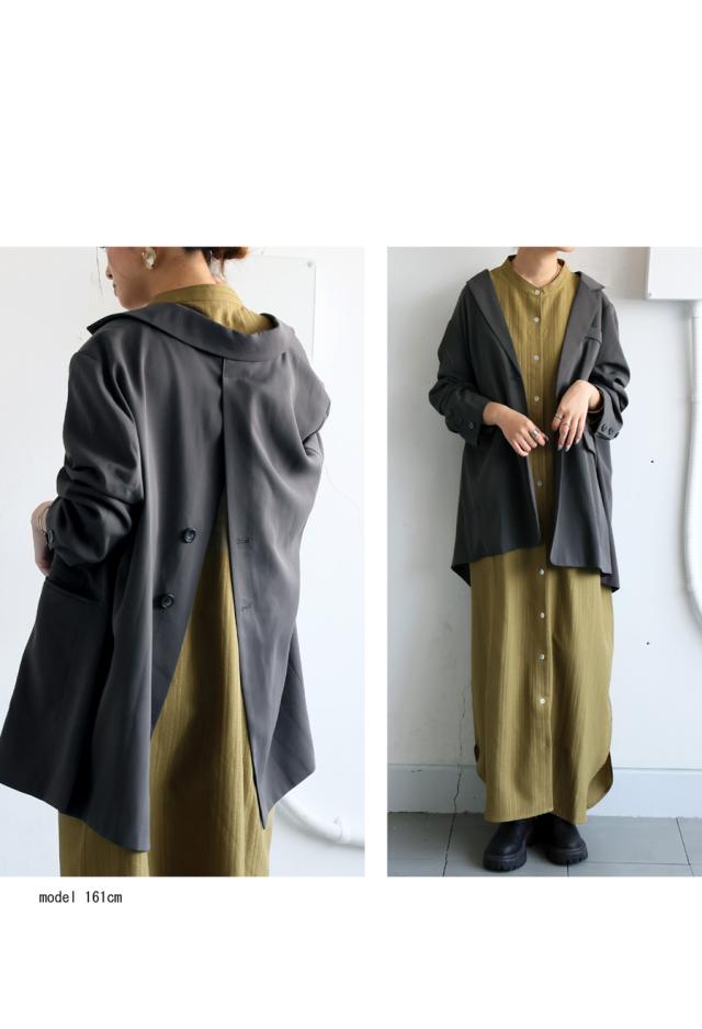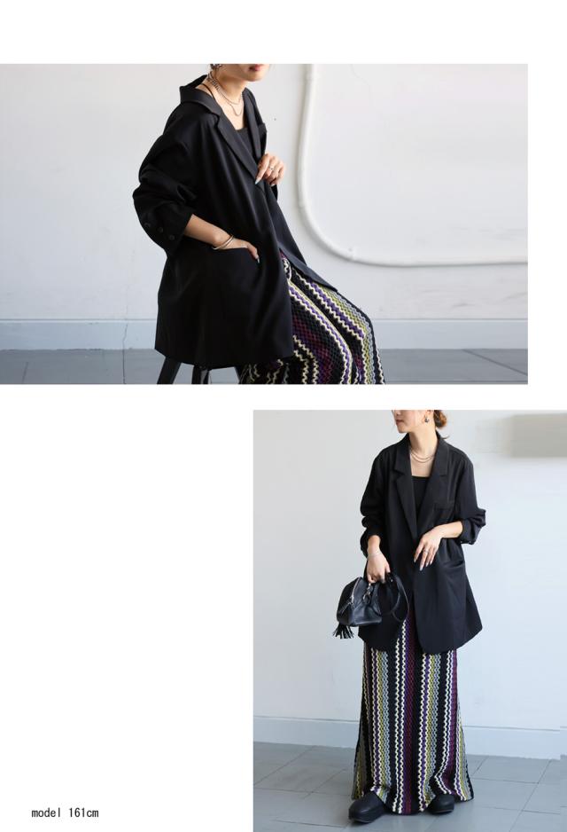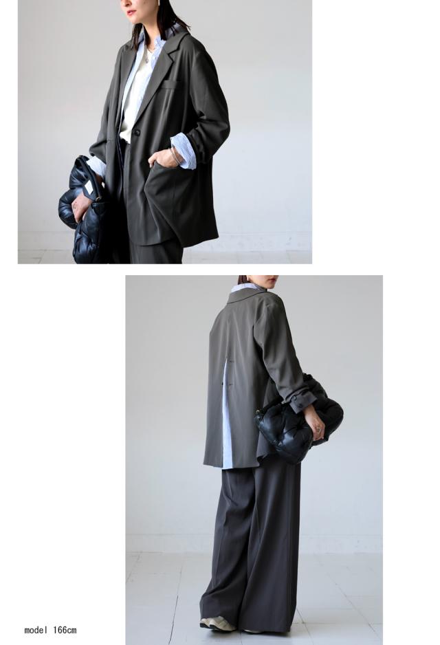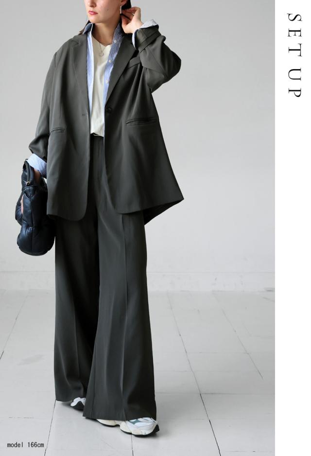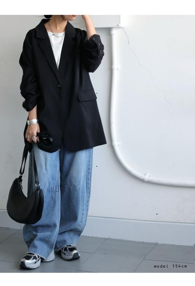 テーラードカラーとシングルボタンのきちんと感がありつつ、ややゆとりのあるシルエットでこなれた印象に仕上がります。