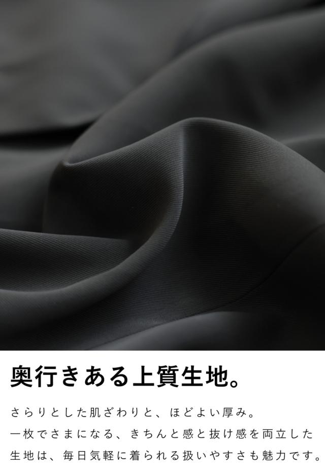 ポリエステル100%のさらりとした素材は、程よい厚みでシワになりにくく、扱いやすさも魅力です。
