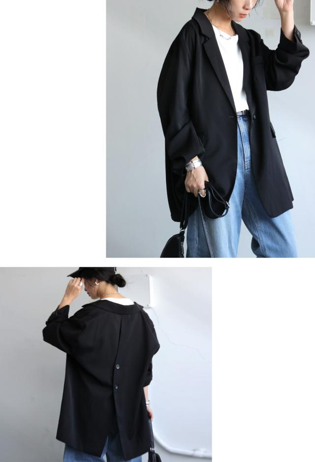 py-00818 ジャケット 羽織り テーラード バックボタン 無地 きちんと感 きれいめ オンオフ兼用 通勤 セットアップ シングル ゆったり オーバーサイズ シンプル カジュアル