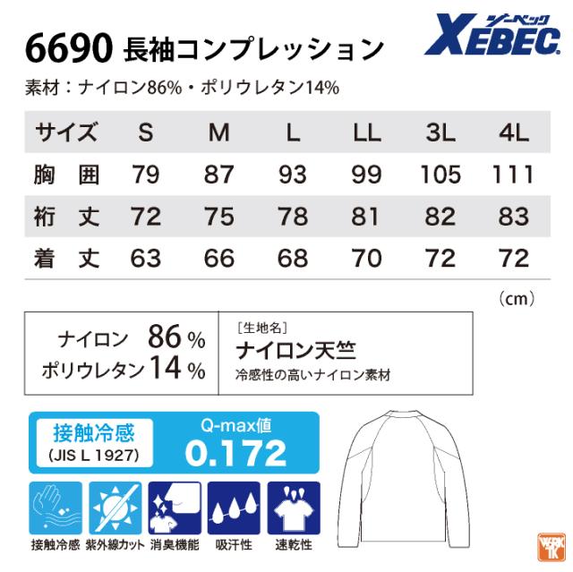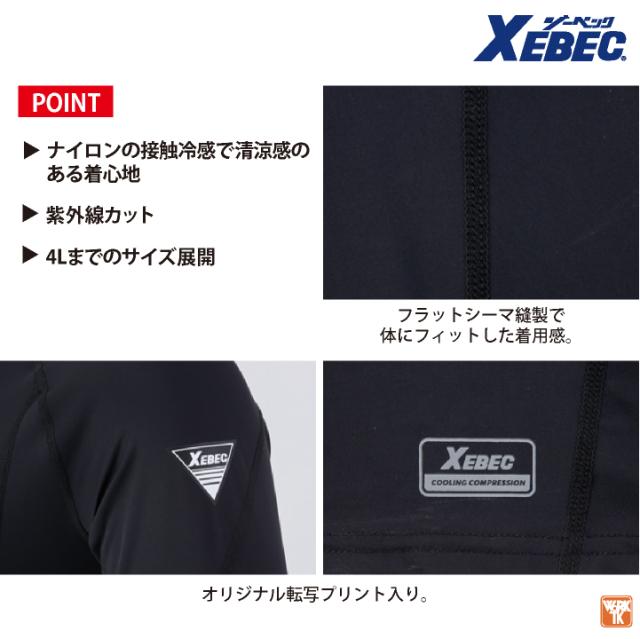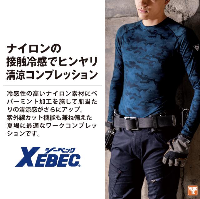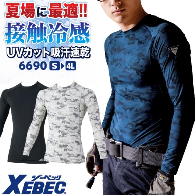 ジーベック 接触冷感 インナー 長袖 ストレッチ UVカット 涼しい ドライ 吸汗速乾 消臭 ナイロン コンプレッション 無地 迷彩 春夏 作業服 作業着 暑さ対策 熱中症対策 アウトドア スポーツ メンズ レディース XEBEC ネコポス xb-6690
