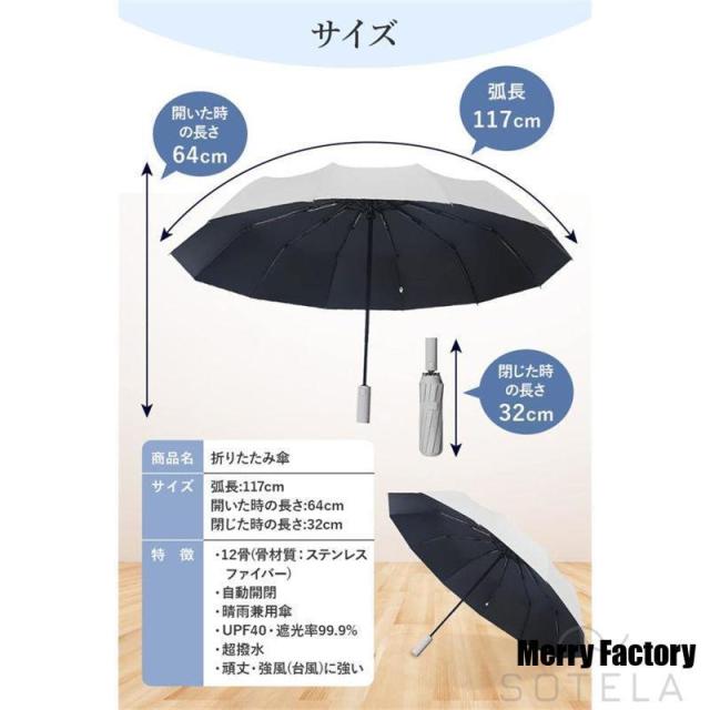 ワンタッチ 大きい 12本骨 晴雨兼用傘 折りたたみ傘 自動開閉 超撥水 メンズ 丈夫 おしゃれ 雨傘 日傘 99%遮光 収納袋ケース付き 頑丈