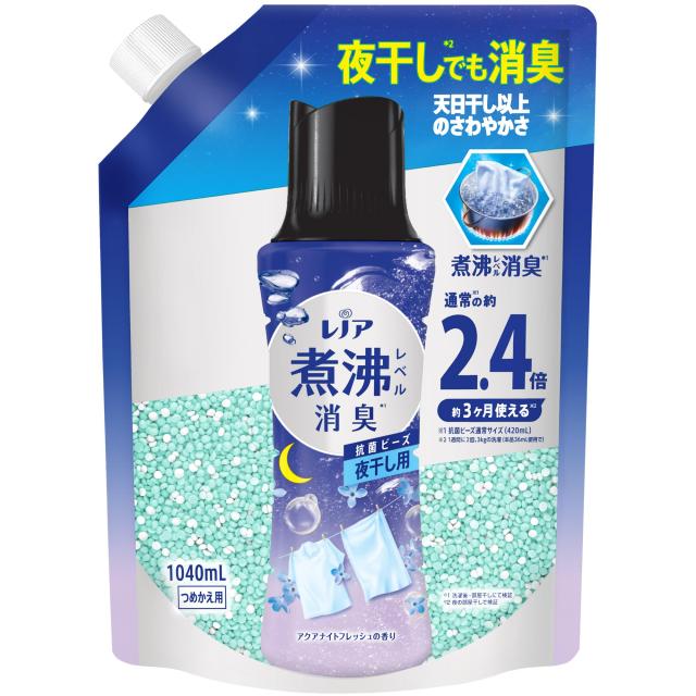 レノア 超消臭 煮沸レベル消臭 抗菌ビーズ 夜干し用 アクアナイトフレッシュ 詰め替え 1,040mL 大容量