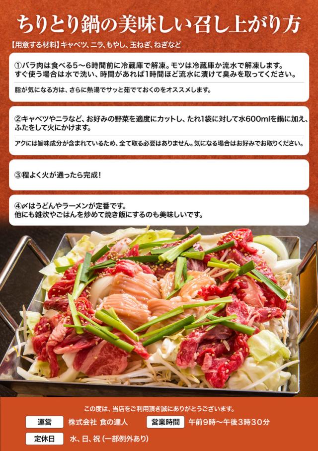 ちりとり鍋セット 2-4人前 ホルモン バラ肉 タレ 大阪 ご当地 鍋 もつなべ