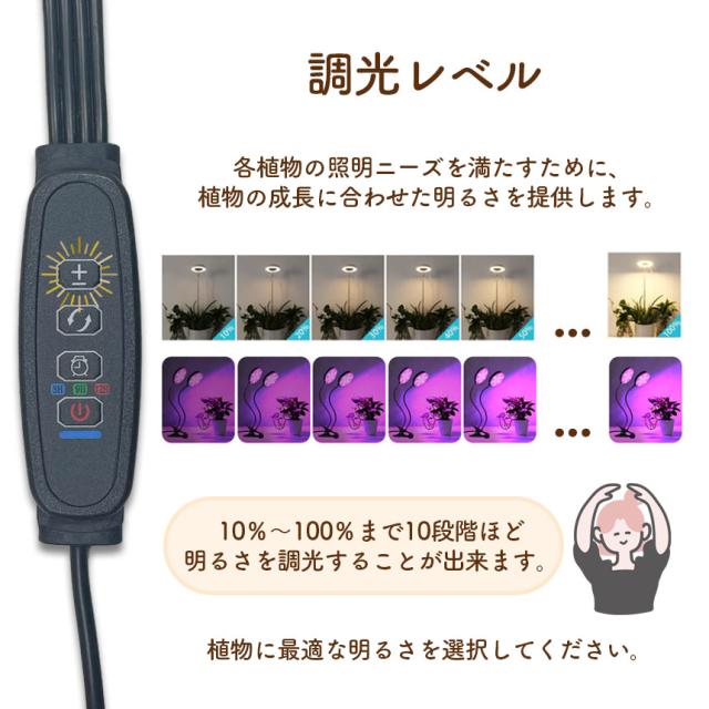 10段階で光の調整が可能です。植物の種類や成長に合わせた明るさを提供します。