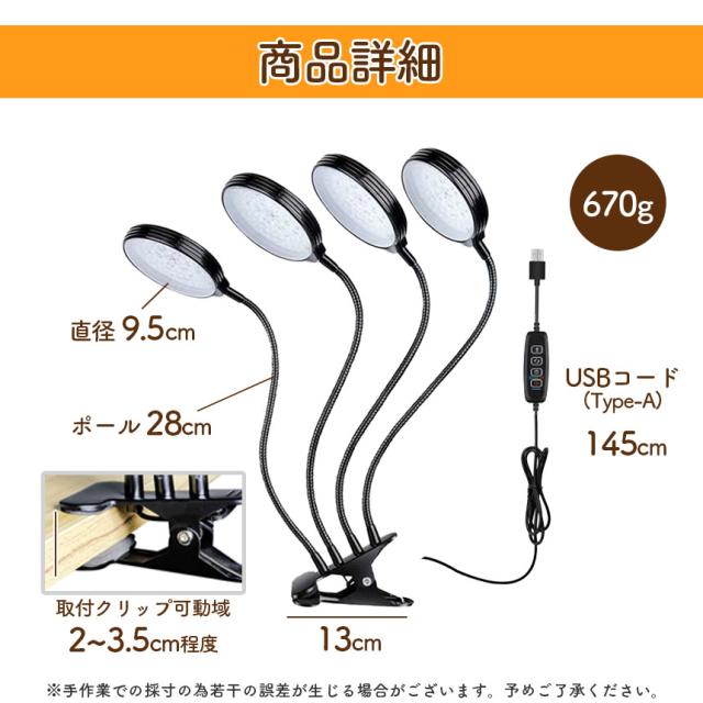LED植物育成ライト 4頭 4灯 植物育成ライト 10段階調光 LED 植物ライト 植物育成ランプ 観葉植物用ライト 室内栽培ランプ 定時機能 タイマー 高輝度 育苗ライト 観葉植物 多肉植物 3モード 10段階 調光 スタンド 付き 簡単 設置 植物育成 光合成促進 苗 野菜 花 果物 ハーブ