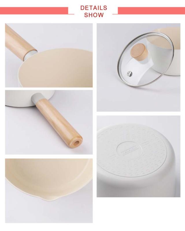 スープパン 蓋付き ミルクパン ソースパン 32.5cm セラミック 片手鍋 木製ハンドル IH ガス コンロ 対応 安全 シンプル おしゃれ 可愛い モダン 綺麗 北欧 デザイン ベージュ ホワイト 白 人気 ウッド 新築祝い 結婚祝い ギフト