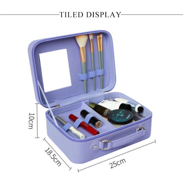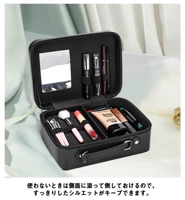 | 旅行や出張など持ち運びに便利なメイクボックス。【鏡付き】【2段】【コンパクト】 ふたの裏側には幅広のミラーがあり、場所を選ばずメイクができます。お家の中はもちろん、旅行やイベントなどでも活躍します。 中央の収納ケースは1段トレーになっていて、コンパクトなサイズながら収納力抜群。 上のトレイにはブラシやペンシルなどの細長いものからヘアクリップ、またお薬のような細かなものまでしっかり仕分ける事ができます。 間仕切りのない下のスペースにはヘアブラシやマニキュア、ボトルなどの大きなものも倒して収納できます。 使わないときは側面に添って倒しておけるので、すっきりしたシルエットがキープできます。 機能的で使いやすい、おしゃれでかわいい、20代、30代、40代、50代幅広い年齢層にご利用いただける高級感もあるデザインです! | |