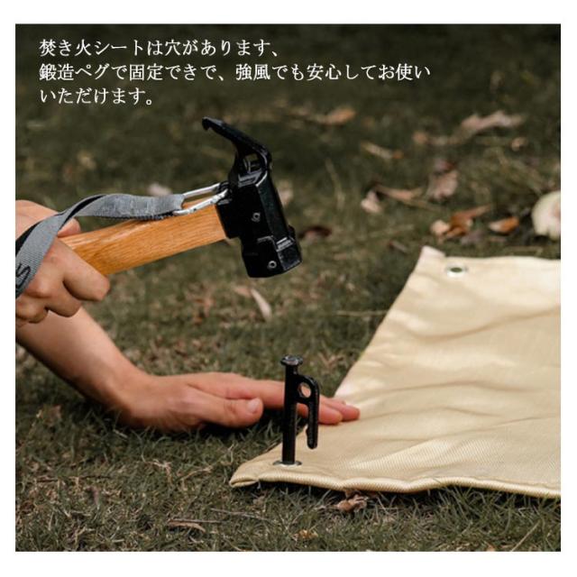 焚き火シート スパッタシート 耐熱シート 難燃シート 焚き火台用 芝生保護 スパッタ防止 ガラス繊維 耐火 耐熱 防炎 防火シート キャンプ BBQ アウトドア 焚き火用 折り畳み 収納袋付き 鍛造ペグ付き