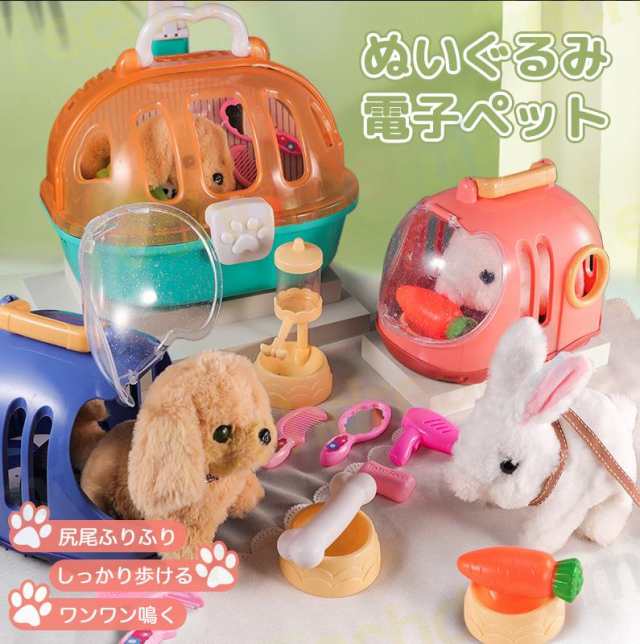 【送料無料 】電子ペット 一緒にお散歩 わんちゃん 犬 動く おもちゃ いぬ 動くぬいぐるみ イヌ ぬいぐるみ キャリーバッグ付き 動く犬 ウサギ おもちゃ 女の子