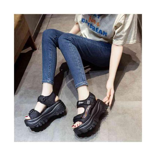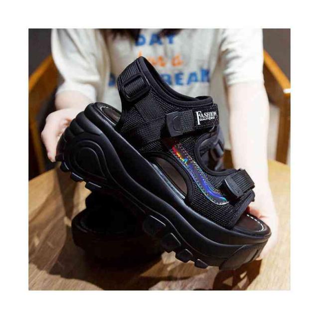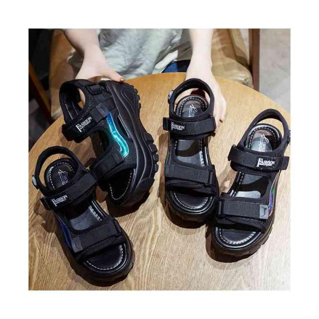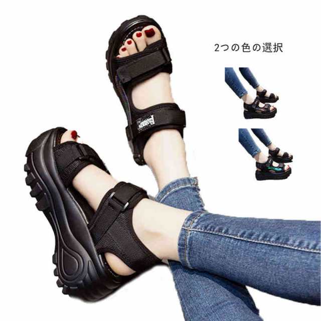 送料無料 サンダル レディース スポーツサンダル 厚底 ベルクロ スポーティ ストラップ レディース 夏 大きいサイズ 小さいサイズ ブラック グリーン