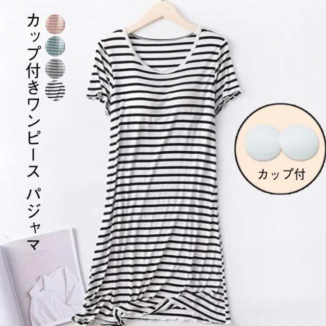ルームウェア カップ付き ナイトウェア 夏 夏用 レディース ホームウェア ワンピース 半袖 部屋着 カップ付き マキシワンピ ロングTシャツ シンプル ボーター パジャマ ワンピース ストライプ ボーダー きれいめ カジュアル 大きいサイズ かわいい