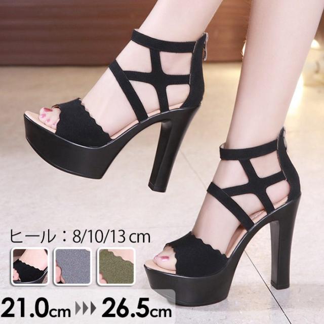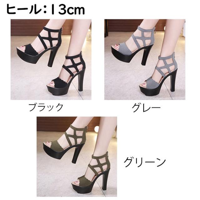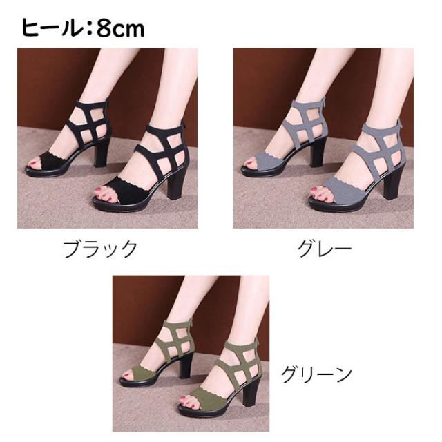 サンダル レディース 3カラー ヒール 太ヒール ベルト 大きいサイズ ヒール8cm/10cm/13cm ハイヒール 小さいサイズ 大きいサイズ ストラップ 女性 シューズ 春夏 大人 母の日 プレゼント ブラック グレー グリーン 21.0 -26.5 mh002m6m6m6