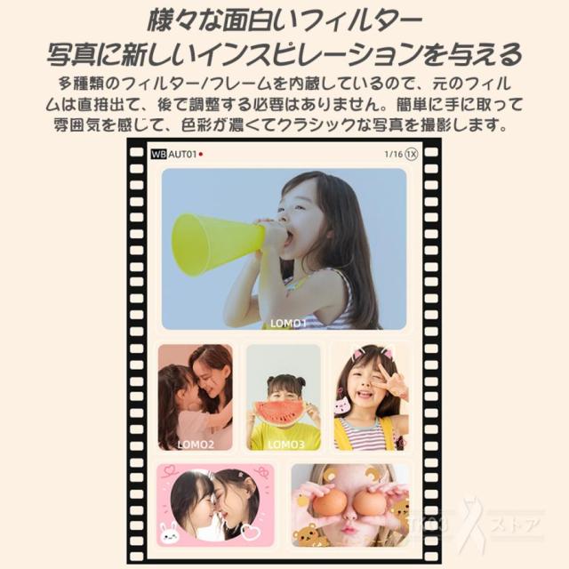 【多機能カメラ】タイムド写真、連続撮影、ビデオ録画、フィルター等の多彩な機能が搭載されていて、子供の好奇心を広げ、成長をサポートします。シャッターを押すだけで使用可能ですので、子供でもすぐ使いこなせます。