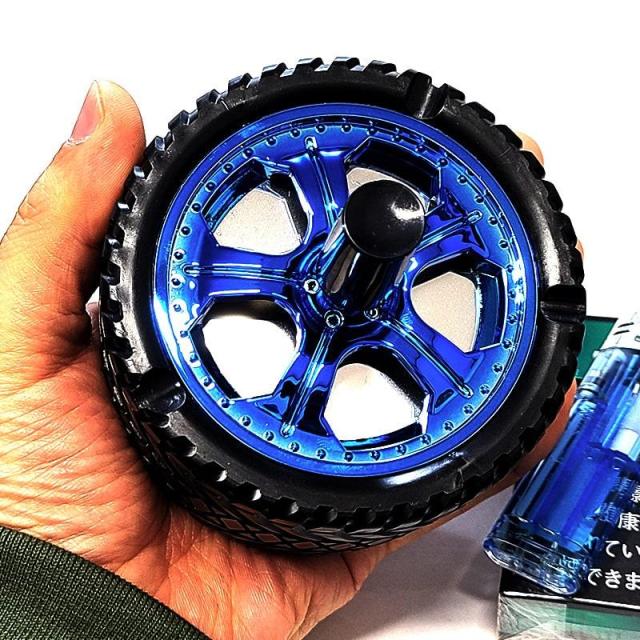 卓上灰皿 おしゃれ タイヤ&ホイール スピン灰皿 選べる 喫煙具 アメリカン タバコ シルバー ゴールド ブラック ブルー インテリア フタ付 小物入れ かっこいい メンズ プレゼント ギフト