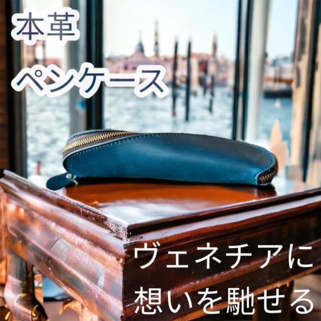 筆箱 ペンケース 本革 入社 入学 高級 メンズ 大容量 ねじれ ブルー プレゼント 男性 40代 50代 牛革 開く 大学生 ヴェネツィア ベネチア イタリア