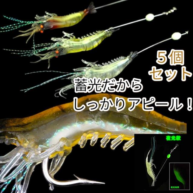 エビワーム 釣り ワーム ルアー ルアーキット ソフトルアー 夜光玉付 烏賊 イカ シーバス マダイ タチウオ シュリンプ ソフト 擬似餌 夜釣り 光る釣り餌