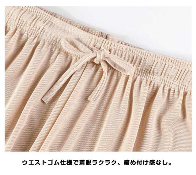 | ワイド アイスシルク素材使用、通気・吸汗性抜群!春・夏・秋に大活躍。 柔らかでドレープ感のある生地が、きれいなシルエットを演出。 吸湿速乾・通気性・冷感を兼ね備えた快適素材。 毛玉になりにくく、引っかかりにくい、色落ちしにくい高品質。 ワイドストレートデザインで、体型カバーしながら脚長効果も◎ シンプル&着回しやすいデザインで、トップスを選ばずコーデ自在。 ウエストゴム仕様で着脱ラクラク、締め付け感なし。 | |