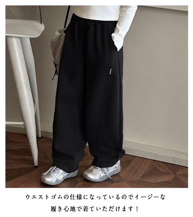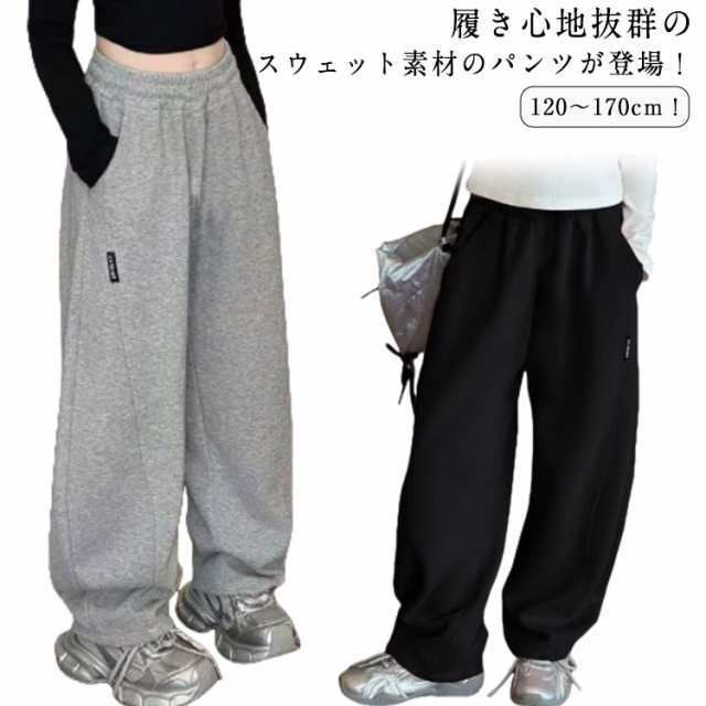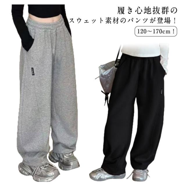 ウエストゴム 通学 ワイドパンツ 韓国 女の子 スウェットパンツ 子供服 スウェットパンツ カーブパンツ パンツ 長ズボン ロングパンツ ジュニア ゆったり 男の子 無地 スウェット 子ども服 おしゃれ ボトムス キッズ 小学校 ダンス 春 秋 120 130 140 150 160