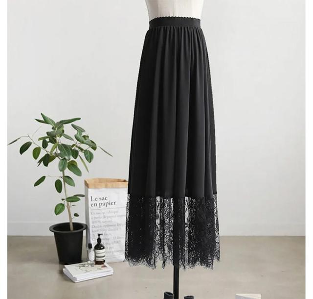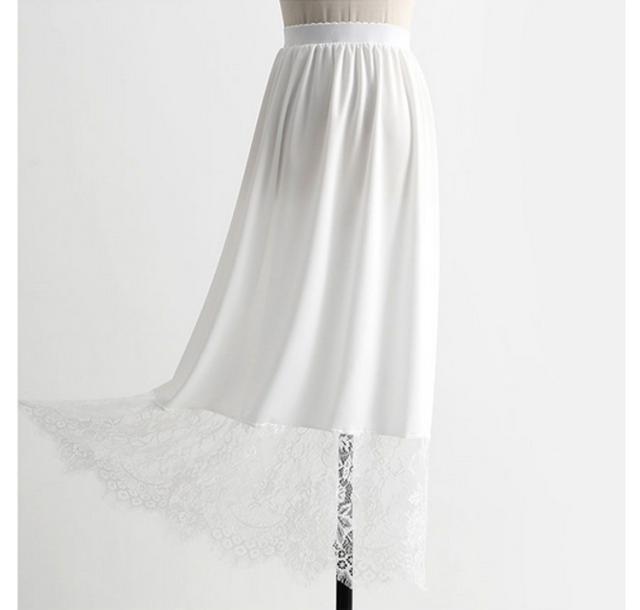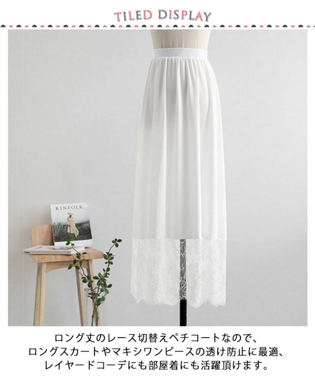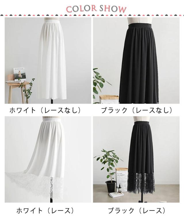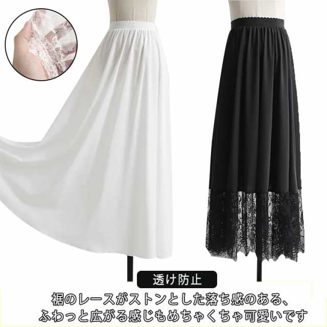 ペチコート レース ペチスカート ロングスカート 80cm/90cm/100cm インナー スカート ワンピース 丈増し 重ね着 レイヤード ドレスインナー ゴムウエスト インナースカート 透けない 透け防止 レディース 白 黒 ロング丈 ドレスインナー