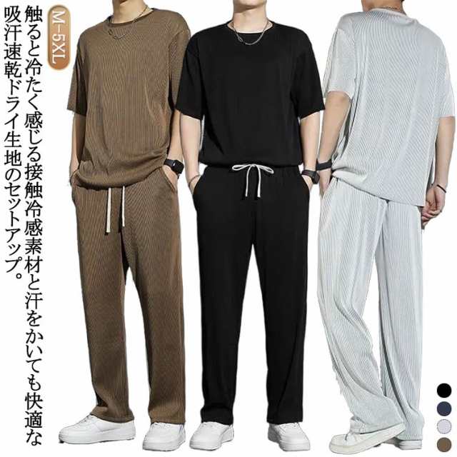 接触冷感 セットアップ メンズ 半袖 ジャージ スウェット 上下セット 半袖Tシャツ ロングパンツ 2点セット 上下 吸汗速乾 ドライ ひんやり 涼しいルームウエア 部屋着 旅行 スポーツ 運動着 アウトドア 大きいサイズ おしゃれ カジュアル 送料無料 春 夏 夏服