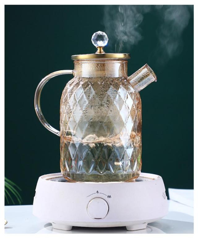 ガラス ティーポット ダイヤモンド 耐熱ガラスポット 直火 紅茶ポット ジャンピング 透明 茶こし付き ティーポット ガラス急須 電子レンジ可 おしゃれ 耐熱ガラス 紅茶 工芸茶