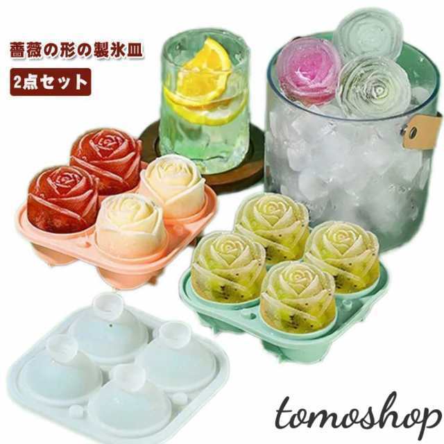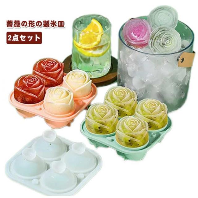 花 立体 製氷器 シリコン型 DIY 花 製菓道具 ふた付き 2点セット バラ型 4個取り 薔薇型 アイスキューブ 氷 ジュース 漏れ防止 ふた付き アイストレー製氷皿 3D diy 取出し簡単 氷 柔らかい 製氷グッズ 高耐久性 漏れ防止 アイスコーヒー ビール 梅酒 製氷皿