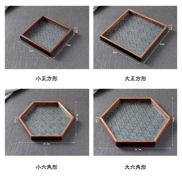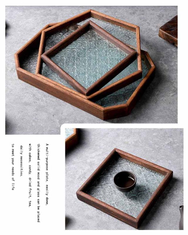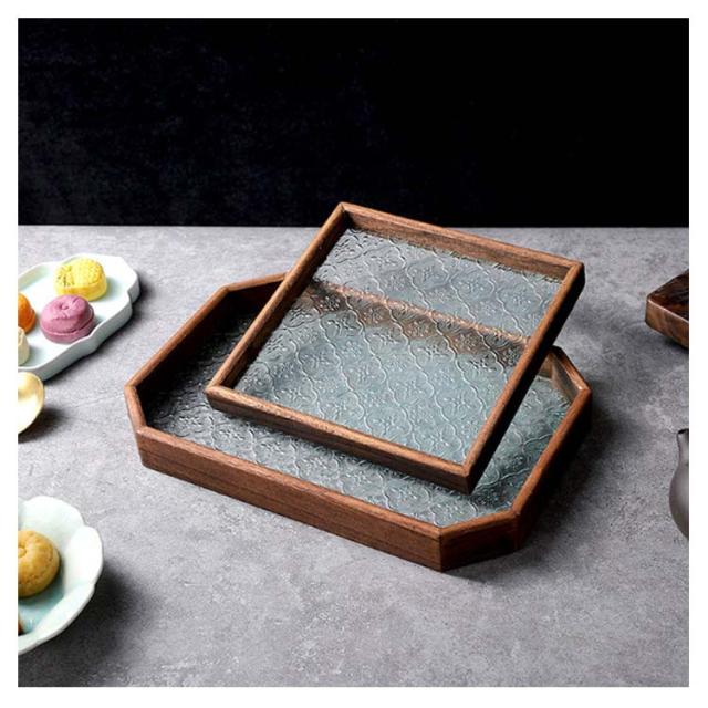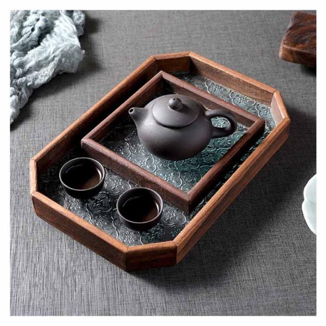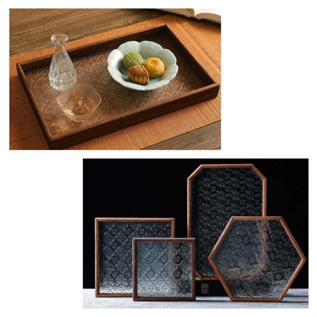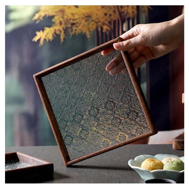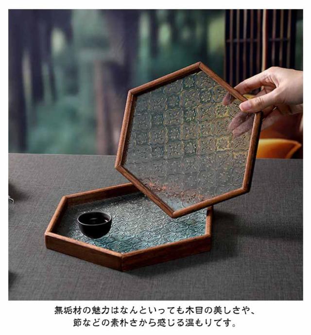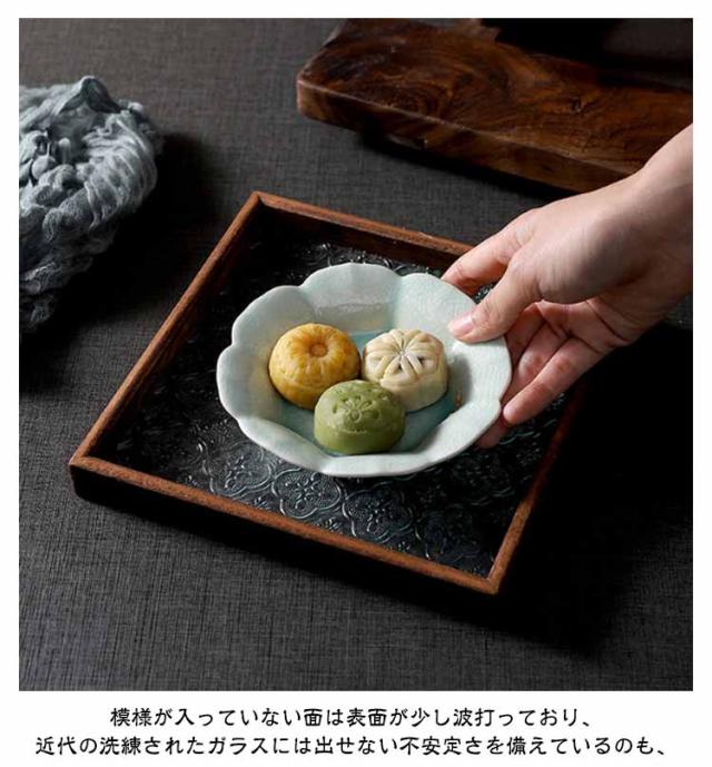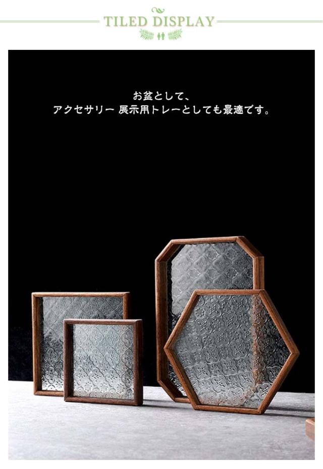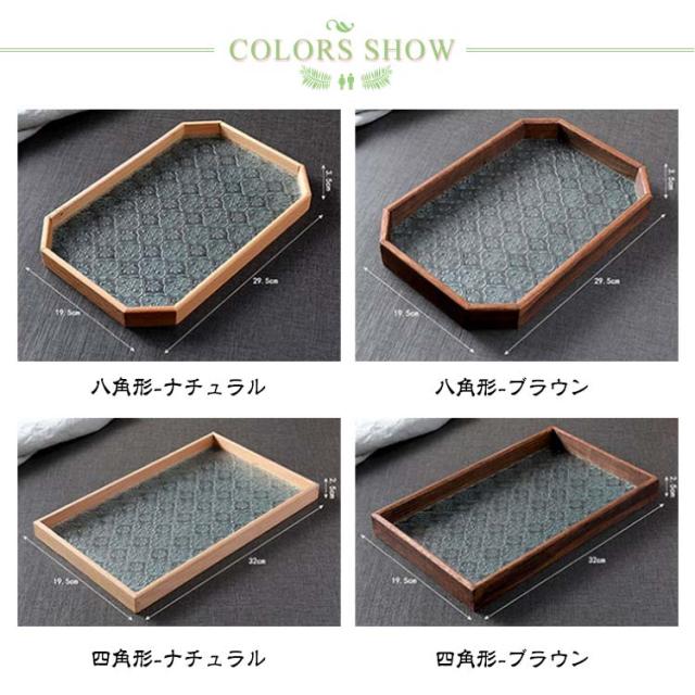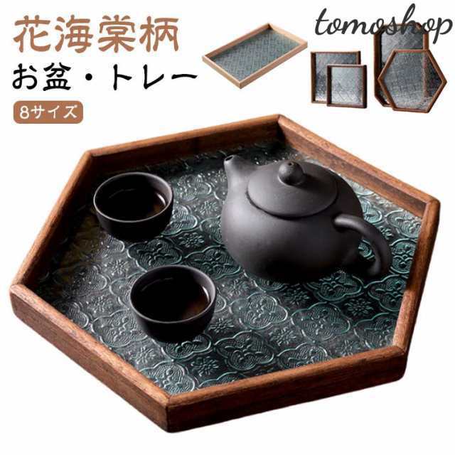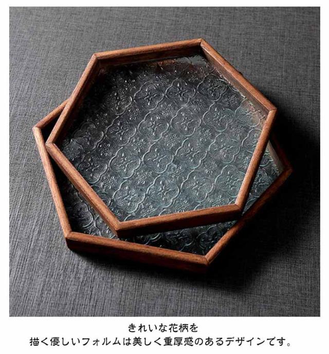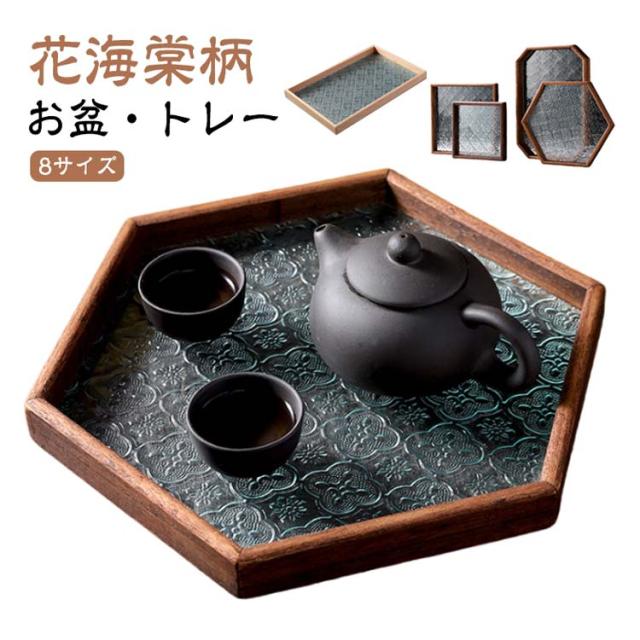 花海棠柄 ガラス トレイ お皿 レトロ調 トレー 8サイズ 花海棠柄 木 フローラガラス 小皿 豆皿 プレート 盛器 カフェトレー ティートレー おしゃれ 配膳トレー ガラスプレート 木製 コースター 茶托 お家カフェ お盆