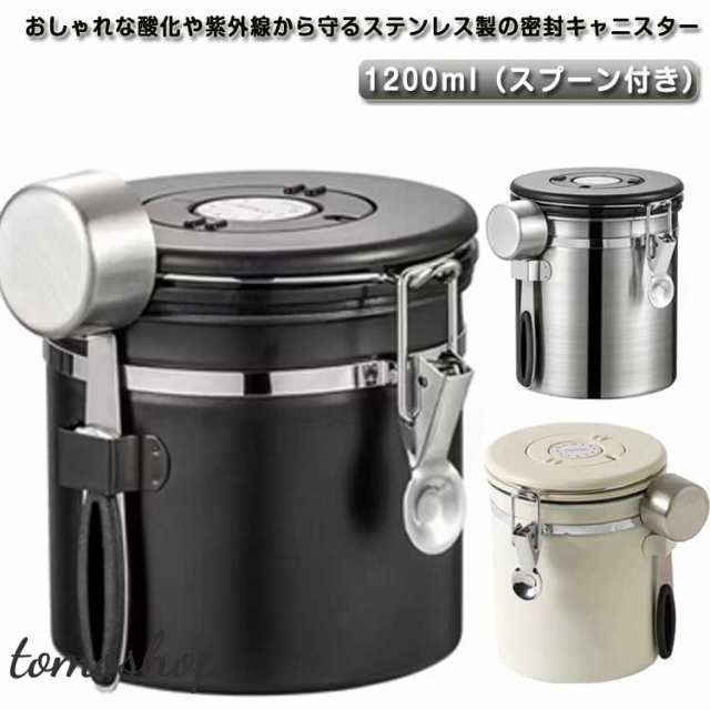コーヒーキャニスター コーヒー豆 キャニスター コーヒー豆保存 コーヒー豆 容器 ステンレス 収納 円筒型 1200ml 密封容器 コーヒー缶 防