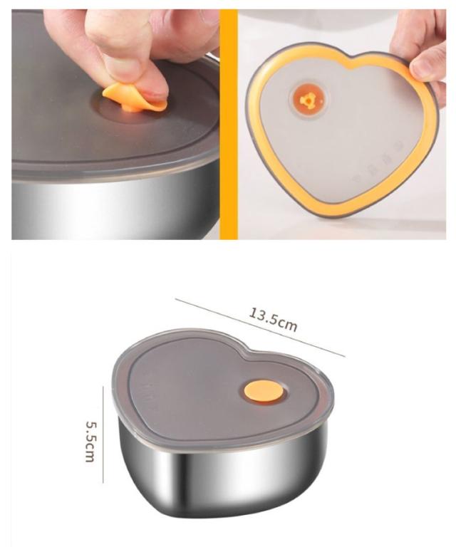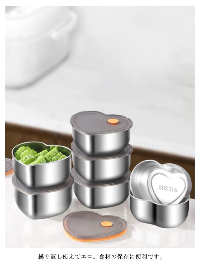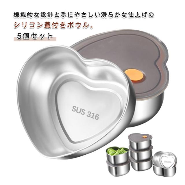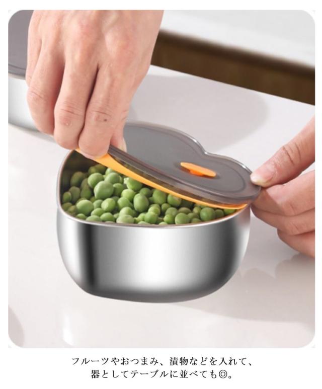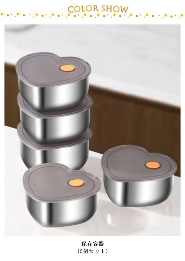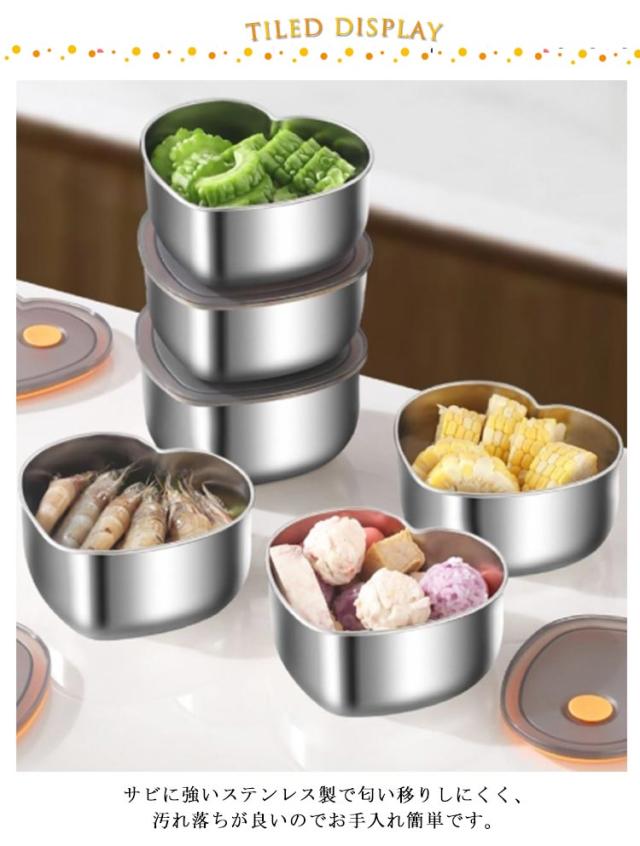ストッカー ステンレス フルーツ 5個セット ボウル 保存容器 ご飯 フードコンテナ 食材保存 蓋付き ふた付き 作り置き 常備菜 おかず 漬物 キッチン ハート型 ケース お弁当 収納 フタ 蓋 冷蔵庫 サビにくい