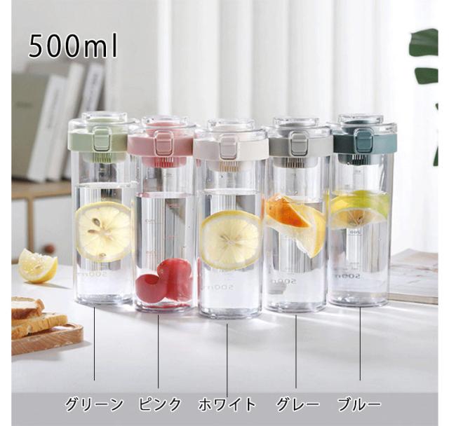 360ml クリアボトル ウォーターボトル 茶こし付き 洗いやすい 直飲み水筒 500ml 2容量選べる 耐冷耐熱 ウォーターボトル 通学 目盛り付き 蓋つき 大容量 ワンタッチオープン ボトル 通勤 オフィス 高い密封性 軽量 漏れ防止