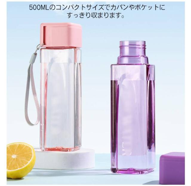 クリア 軽い ミニボトル 直飲み プラスチック 水筒 持ちやすい 矩形 スリムボトル 500ml ボトル コンパクト 水分補給 子供 丈夫 おしゃれ ボトル 小さい 子供 軽量 コンパクト 女性 子ども キッズ 大人 ギフト 可愛い 散歩